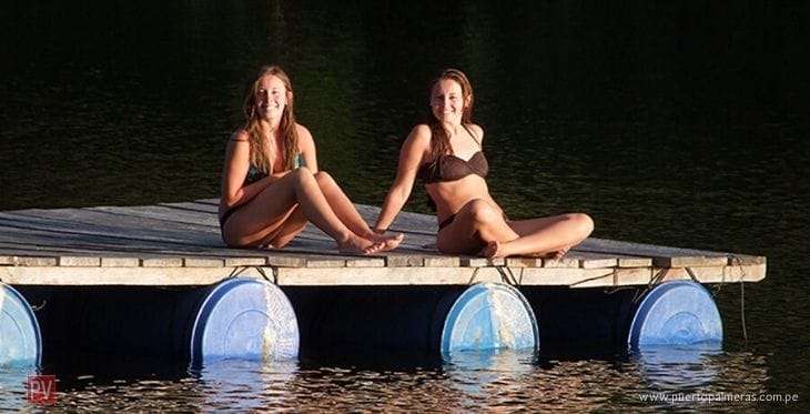 Chicas en bikini disfrutando del lago artificial del Hotel Puerto Palmeras Tarapoto Resort